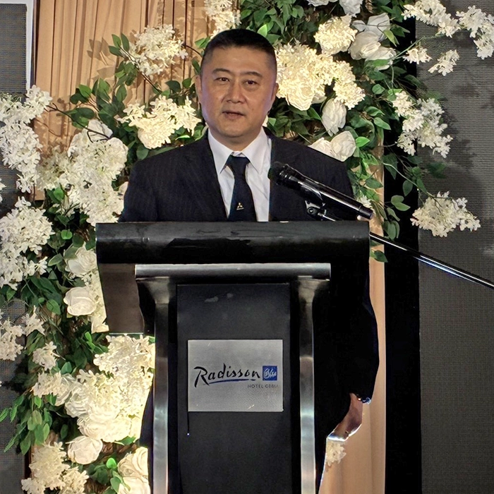 続いてMSMフィリピンの大﨑社長より、着任直後に経験した地震や台風、洪水を振り返ったうえで、「従業員が互いに支え合いながら前へ進む姿を目の当たりにし、この力と絆があれば、どんな困難も乗り越えられると確信しました」と新たな挑戦に立ち向かう決意を力強く宣言しました。