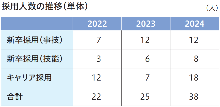 「個を活かすマネジメントサイクル」の基点となる採用活動は、その後の育成や組織文化の醸成、ひいては事業成長の土台を築くと考えており、当社の事業の発展に資する人材 確保に向けて、採用活動の強化を進めています。