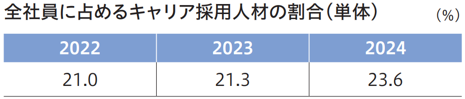 特にキャリア採用については、欠員者の補充中心の採用活動から、例えば育成を進めている戦略事業に関する技術等の知見・経験がある人材の確保等、事業変革を加速させる即戦力となる経験者の採用に注力しています。