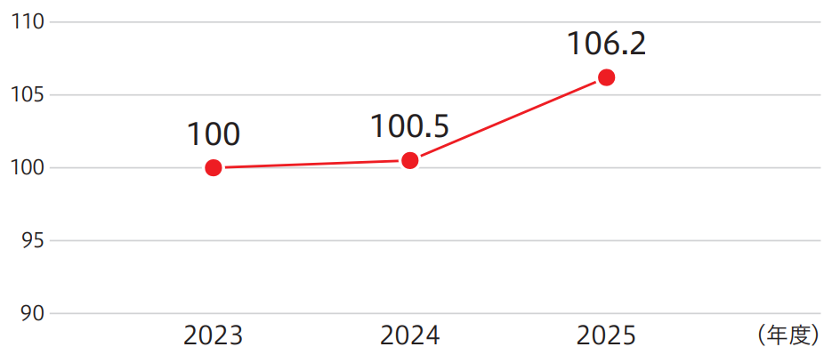 人的資本経営の成果を定量的に把握するためのKGIとして、「人的資本ROI」(営業利益額÷人的資本投資額)を設定しています。これは、当社が行った「人」への投資(人的資本投資額)が、どれだけ企業価値の向上に寄与したか(営業利益額)を示す指標です。同指標を活用することで、経営目標に対する投資効果を可視化し、より効果的な人的資本経営の推進が可能となります。