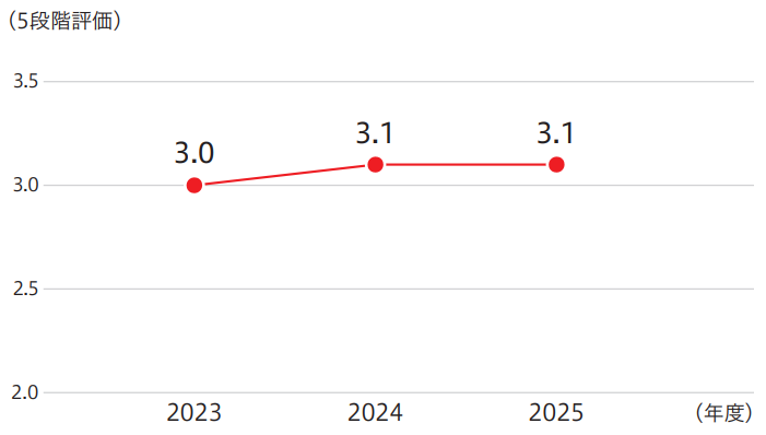 取り組みの達成度合いを測る指標としては、従業員エンゲ―ジメントサーベイにおける「上司の満足度」に関するスコアを指標としており、研修等を通したマネジメント層の質の底上げにより、持続的なスコア向上を図ってまいります。